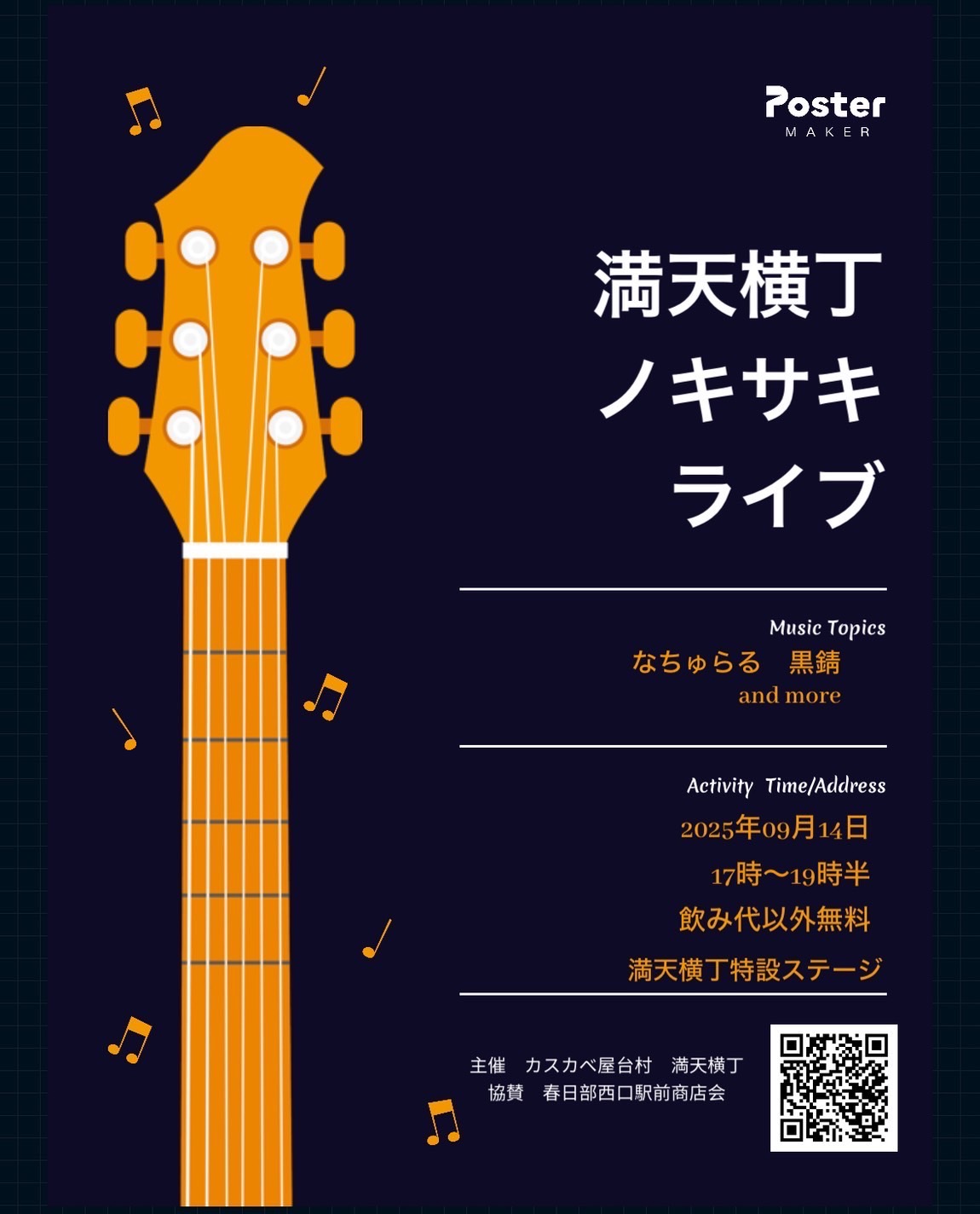 [黒錆]Live情報!09月14日(日)「満天横丁」黒錆出演!